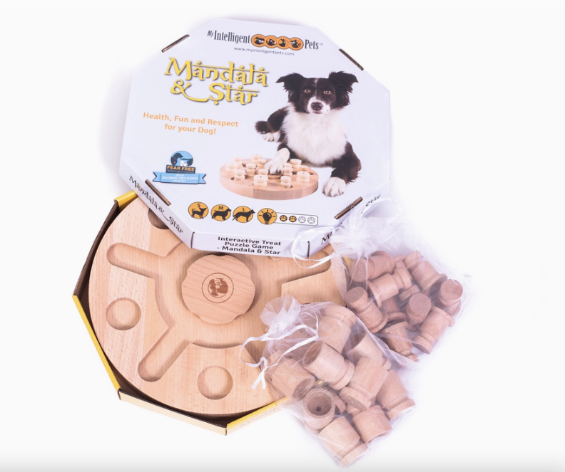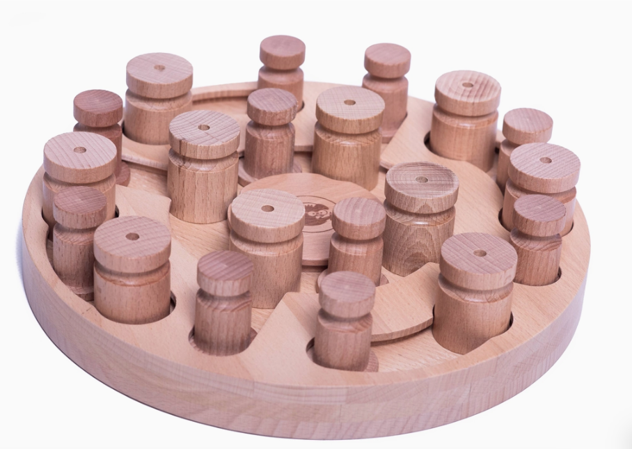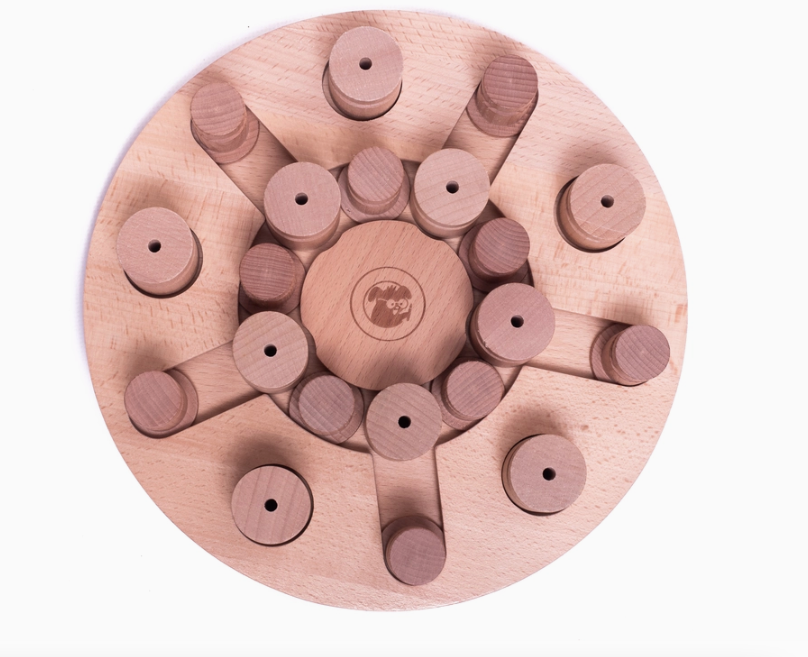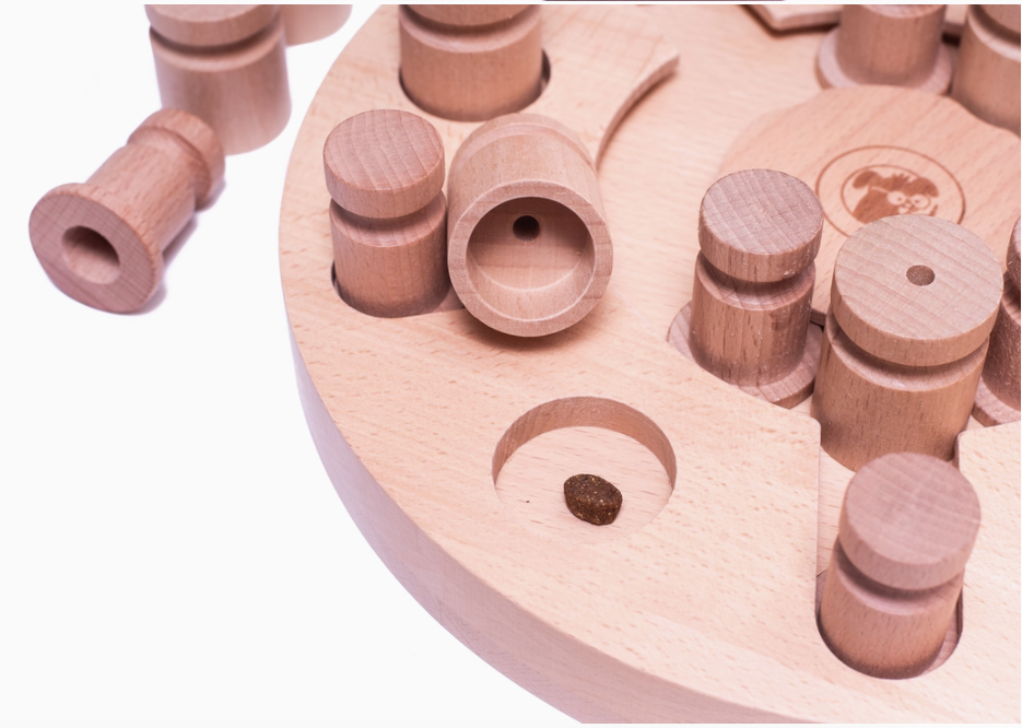 Wir nennen es "Snackdala". Das perfekte Denkspiel für clevere Schnüffelnasen mit Stil. Außen Zen, innen Strategie – wie ein Schachbrett in Hundeversion, nur ohne den Turm, dafür mit versteckten Leckerlis.
