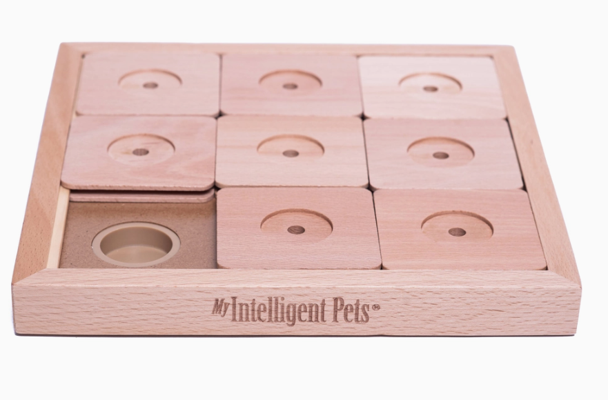 Mit Schiebe-Elementen geht dein Hund auf Spurensuche - ganz im Stil von Sherlock Bones. Jedes versteckte Leckerli ist ein kleines Erfolgserlebnis und fördert die natürliche Neugier. Jedes der 9 Felder hat eine Vertiefung, in der trockene Hundesnacks versteckt können. Über den Feldern befinden sich verschiebbare Plättchen. Der Hund muss diese Spielsteine so verschieben, dass er die Leckerlis erreichen kann.